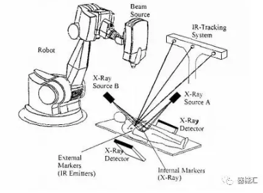 目前主要是賽博刀(Cyber knife)系統(tǒng)在使用這種方式,當然也有在以前的不具備IGRT功能的常規(guī)加速器系統(tǒng)中增加這樣一套定位系統(tǒng)的,例如江蘇瑞爾醫(yī)療科技公司就主要從事類似的雙X線圖像引導(dǎo)系統(tǒng)的研制和安裝使用,并取得了不錯的反響。