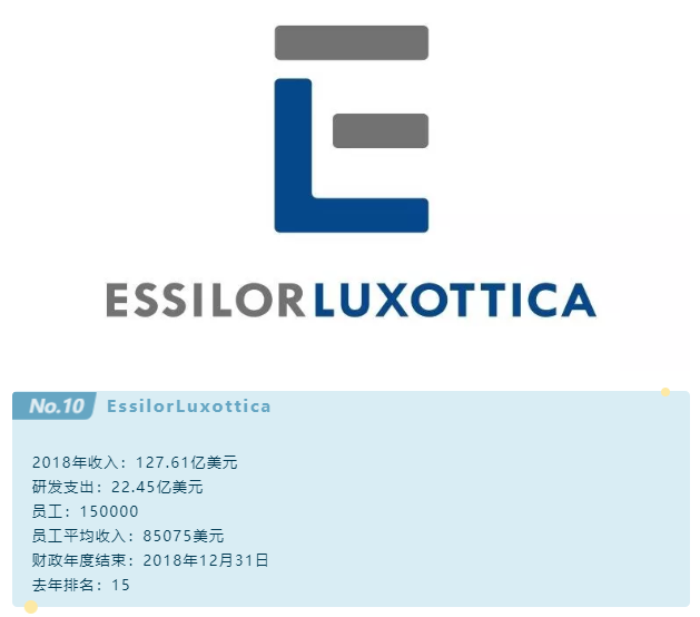 EssilorLuxottica于去年10月與法國(guó)鏡片專家Essilor和意大利眼鏡制造商Luxottica合并后成立,以540億歐元的價(jià)格成為全球最大的眼鏡制造商。通過并購(gòu)從全球醫(yī)療器械企業(yè)第15位一舉躍進(jìn)十強(qiáng)席位。
