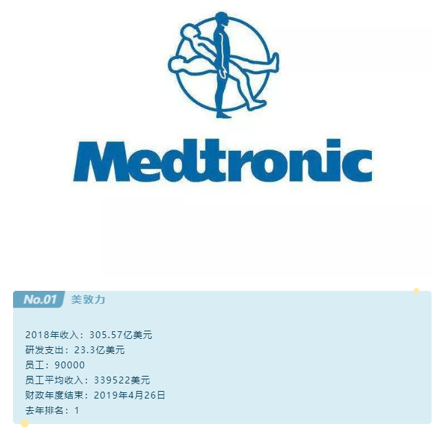 以下是2019年全球十大醫(yī)療器械公司名單。值得注意的是,除了排名前三的美敦力、強(qiáng)生、飛利浦、第八的丹納赫,10強(qiáng)的其余排名均發(fā)生變化。