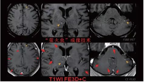 此技術(shù)主要用于神經(jīng)系統(tǒng)惡性腫瘤,以及其他腫瘤腦轉(zhuǎn)移瘤篩查。傳統(tǒng)情況下做腫瘤腦轉(zhuǎn)移篩查,很容易漏掉5mm以下小病灶,臨床發(fā)現(xiàn)后干預(yù)治療比較晚,要實(shí)現(xiàn)2mm高空間分辨率和超薄層全腦掃描在保證信噪比的情況下需要很長(zhǎng)時(shí)間大概十多分鐘,而且薄層增強(qiáng)序列顱內(nèi)血管呈高亮信號(hào),會(huì)干擾顱內(nèi)小病灶的觀察,血管和小病灶區(qū)分困難。佳能”螢火蟲”成像技術(shù)既可以實(shí)現(xiàn)高空間分辨率和超薄層(最薄可實(shí)現(xiàn)0.2mm)全腦掃描,掃描時(shí)間短,2-3分鐘即可實(shí)現(xiàn)全腦3D掃描,同時(shí)避免了血管高亮信號(hào)的干擾,對(duì)顱內(nèi)原發(fā)或繼發(fā)的微小腫瘤檢查有重大意義。“螢火蟲”成像技術(shù)具有磁敏感效應(yīng),對(duì)于亞急性血敏感敏感,可以區(qū)分出血和強(qiáng)化的腫瘤。