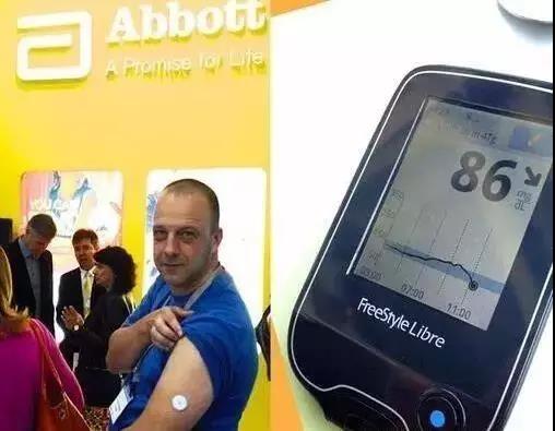 雅培公司的Free Style Libre Flash血糖監(jiān)測儀是目前體積最小型的穿戴式血糖監(jiān)測設(shè)備,血糖檢測儀由一個兩歐元大小的一次性圓形傳感器組成,通過一個長 5 毫米、寬 0.4 毫米的微型針頭和小膠貼固定于上臂外側(cè),該傳感器具有防水功能,持續(xù)時間長達(dá) 14 天,讀數(shù)時,將配套的手持閱讀器置于傳感器上方,即可在一秒鐘內(nèi)掃描獲得血糖測試結(jié)果,掃描可以隔著衣服進(jìn)行,閱讀器中的血糖數(shù)據(jù)可保留 90 天。由于讀數(shù)時需要用手持閱讀器掃描傳感器,導(dǎo)至這款監(jiān)測儀無法實(shí)現(xiàn)血糖的連續(xù)監(jiān)測,也無法提供預(yù)警和夜間讀數(shù)。