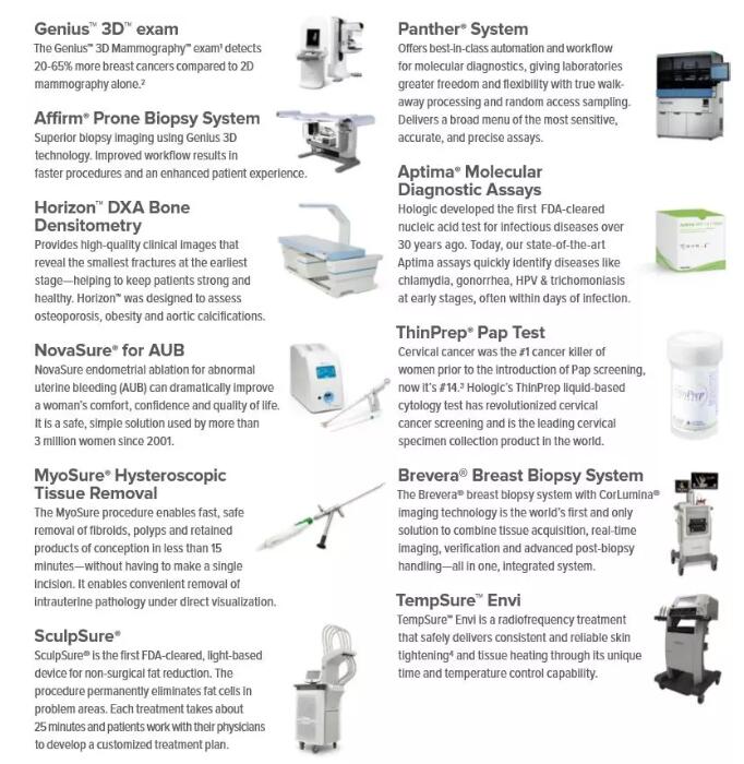 HOLOGIC(豪洛捷)是美國一家開發(fā)、生產(chǎn)和銷售診斷產(chǎn)品、醫(yī)療成像系統(tǒng)以及婦女外科檢查產(chǎn)品的公司,總部位于美國馬薩諸塞州波士頓市。豪洛捷在為女性健康服務(wù)的技術(shù)領(lǐng)域中位于世界前列,包括:乳腺癌的診斷與治療、宮頸癌篩查、產(chǎn)前檢測和骨質(zhì)疏松癥檢測。HOLOGIC公司分為:診斷、乳腺健康、婦科手術(shù)和骨骼健康四個(gè)事業(yè)部。