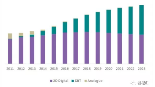 在過去的兩年中,DBT的應用使乳腺X線攝影市場經(jīng)歷了快速增長。在早幾年前引入報銷制度后,這一趨勢在美國尤為明顯,2017年達到頂峰。