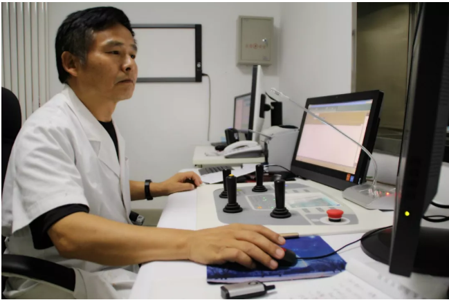 衡水市中醫(yī)醫(yī)院的放射科主任醫(yī)師于金厚主任操作國產(chǎn)DR設(shè)備