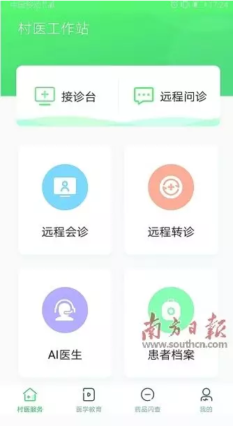 “村醫(yī)工作站”APP的主界面。