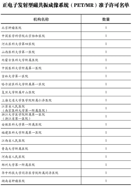 ? 正電子發(fā)射型磁共振成像系統(tǒng)(PET/MR)。加強對在用設(shè)備使用狀況的跟蹤和評價。到2020年底,全國暫規(guī)劃配置33臺,按華北、東北、華東、中南、西南、西北6個區(qū)域配置,其中新增28臺。