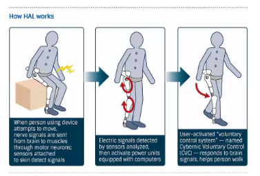 在這部科幻小說的啟發(fā)下,美國和日本在1960年后分別開啟了機(jī)械外骨骼的研究。美國由軍方主導(dǎo)研發(fā),日本則直接從外骨骼的商業(yè)用途入手,關(guān)注幫助殘疾人和老年人進(jìn)行日常生活和生活(散步、爬樓梯、負(fù)載等)。
