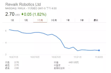 ReWalk公司于2014年9月在納斯達(dá)克上市,上市第一個月受到了市場追捧,股價創(chuàng)新高,最高超過30美元,較發(fā)行價上漲超過3倍,動態(tài)PS達(dá)到80倍。但由于持續(xù)大額的虧損以及遲遲打不開市場,之后股價就開始一路下挫。