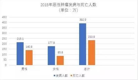 據(jù)國(guó)家癌癥中心2019年1月發(fā)布的中國(guó)癌癥報(bào)告統(tǒng)計(jì),惡性腫瘤死亡占居民全部死因的23.91%,且發(fā)病率連續(xù)十幾年呈持續(xù)上升趨勢(shì),2015年(全國(guó)腫瘤中心登記數(shù)據(jù)通常滯后3年,2015年為最新的數(shù)據(jù))惡性腫瘤發(fā)病約392.9萬(wàn)人,死亡約233.8萬(wàn)人,平均每天有約1萬(wàn)人確證為惡性腫瘤,每分鐘有7.5人確診,環(huán)比過(guò)去10年數(shù)據(jù),惡性腫瘤發(fā)病率每年有3.9%增幅,死亡率有2.5%增幅。
