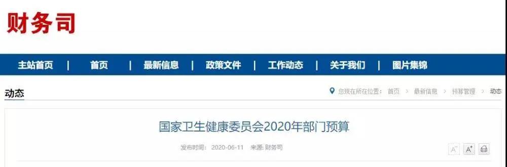 近日,國(guó)家衛(wèi)健委財(cái)務(wù)司最新發(fā)布了國(guó)家衛(wèi)生健康委員會(huì)2020年部門預(yù)算,對(duì)各個(gè)部門2020年的收支情況進(jìn)行了說(shuō)明。