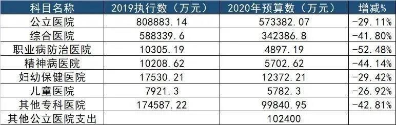值得注意的是,在一般公共預(yù)算支出表中,國(guó)家衛(wèi)健委明確,2020年公立醫(yī)院的預(yù)算為573382.07萬(wàn)元,同比2019年的執(zhí)行數(shù)減少了29.11%。