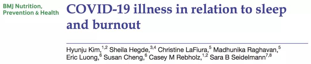 原始出處Hyunju Kim1,2, Sheila Hegde3,4, Christine LaFiura5, Madhunika Raghavan5, Eric Luong6, Susan Cheng6, Casey M Rebholz1,2 and Sara B Seidelmann7,8.COVID-19 illness in relation to sleep and burnout, BMJ Nutrition Prevention & Health, DOI: 10.1136/bmjnph-2021-000228