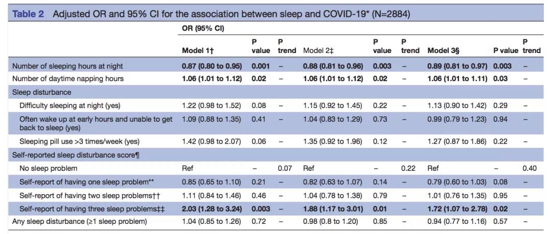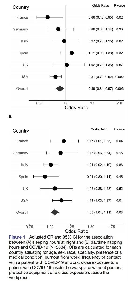 另外,調(diào)整混雜因素后統(tǒng)計分析,夜間睡眠時間每增加1小時,感染COVID-19的幾率就會降低12%。