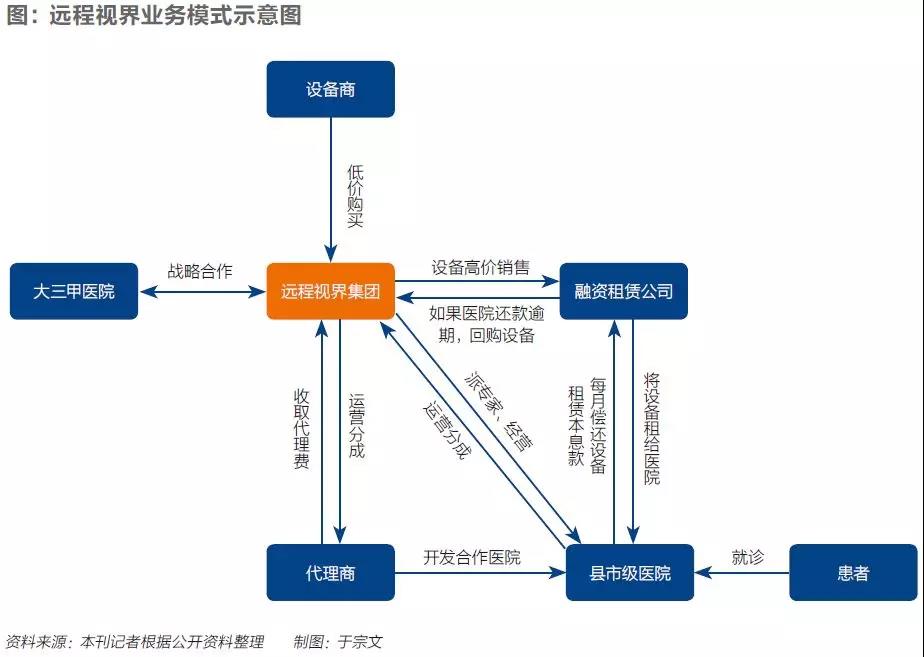 在遠(yuǎn)程視界官網(wǎng)上,其自我定位為“??七h(yuǎn)程醫(yī)療聯(lián)合體O2O平臺(tái)”。但一位前員工解釋說,其主要盈利模式就是做融資租賃。
