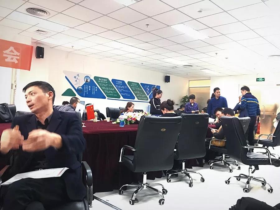 (2018年4月10日10時(shí)36分,來自各地的代理商聚集在遠(yuǎn)程視界辦公區(qū)內(nèi),要求退還代理費(fèi)。攝影/《財(cái)經(jīng)》記者 張利)