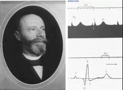 1903年,Einthoven成功地用弦線式心電圖機(jī)記錄了第一份真正意義上的心電圖,并將各波命名為P、Q、R、S、T、U波,這些命名沿用至今。這一年被稱為心電圖的公元元年,愛因托芬因因此被稱為心電圖之父。