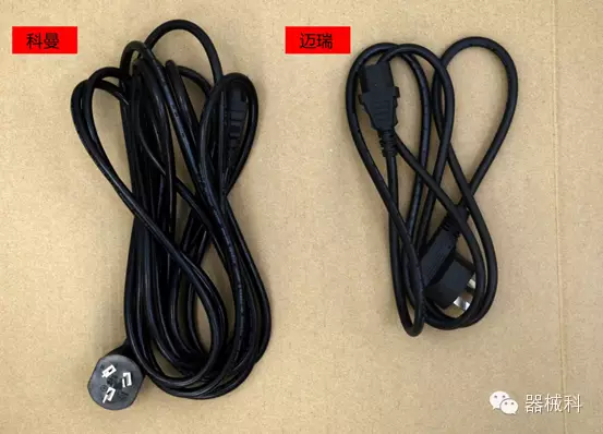 兩家的電源線都采用了標(biāo)準(zhǔn)的電源插頭,這種電源線比較普遍,應(yīng)急時比較容易找到合適的線。邁瑞線長1.8,一般情況下夠用。科曼3米長,在使用上可以更加靈活。線短,整理起來方面;線長,使用場景更多。