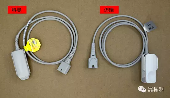 兩家都采用目前比較普遍的DB9插頭的轉(zhuǎn)接方式??坡@得沉穩(wěn),線體粗壯,線上還加了磁環(huán),抗干擾能力更強(qiáng)。邁瑞看起來簡潔新潮,用起來更柔軟,不知道是不是為了不影響美觀才沒有設(shè)計磁環(huán)呢?