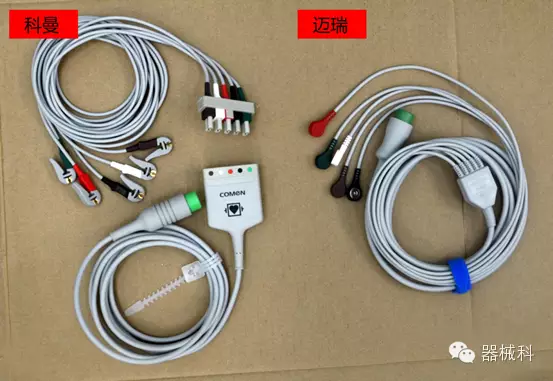 科曼采用防除顫分體夾式5導(dǎo)聯(lián)線,分纜長度為LA,RA,V導(dǎo)聯(lián)1米;RL,LL導(dǎo)聯(lián)1.6米;邁瑞采用防除顫一體扣式5導(dǎo)聯(lián),分纜統(tǒng)一為0.6米,主纜部分長度一樣。導(dǎo)聯(lián)線上的分纜,容易損壞。如果只是分纜換了,分體式只用換掉分纜就行了,而一體式只能換掉附件,減少不必要的浪費,提高使用率,節(jié)約成本。